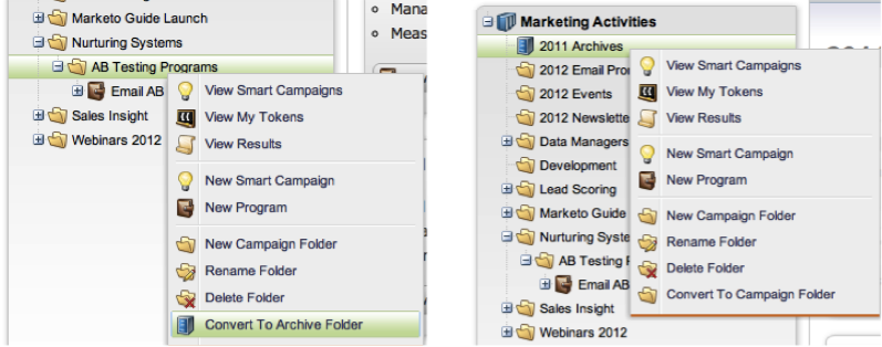 You can Archive old assets of any type using the Archive feature of folders. Once a folder, program, asset, or campaign is inside an Archive, it is no longer visible to Search and it looks all filed away. Do keep in mind, Archived campaigns are not deactivated. The logic will still work, so if you plan to archive an active campaign, you should consider deactivating it first.