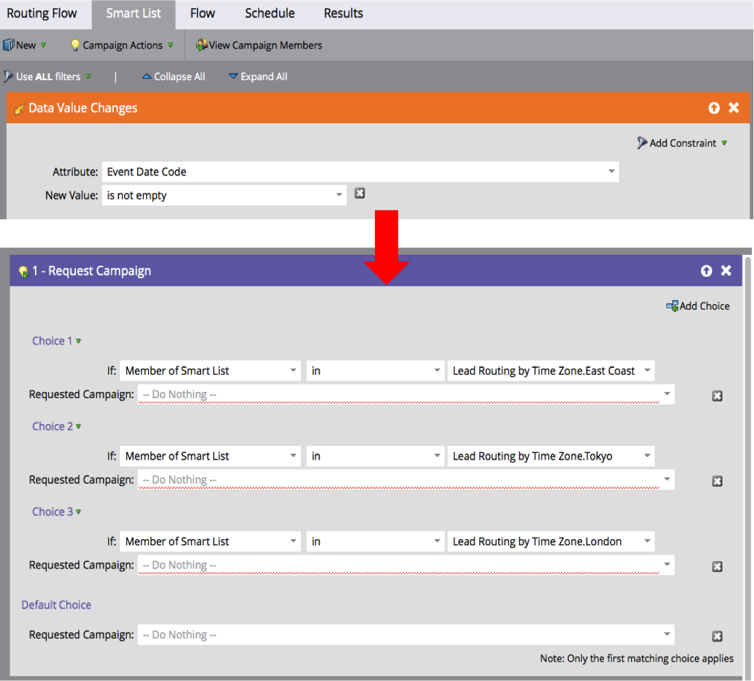 Since Marketo doesn’t have a time zone concept built in, we need to tell Marketo what to do when a lead is created at a certain time. In this example, I assume your System Time is EST, so remember to do the time zone math before you begin.
